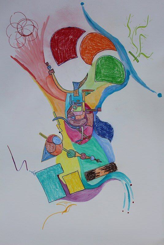 Selon moi, l’éther est le reflet de ce que l’on voit dans une œuvre abstraite. Il est à l’origine de ce que nous suggère notre esprit. Le trait,  la forme,  la couleur et l’harmonie sur un support, nous font entrer en résonnance avec l’œuvre.  La résonnance est l’élément vibrant, tout comme l’Ether. Il lie l’œuvre à notre sensibilité. Notre sensibilité, au moment présent, est constituée de notre expérience et de nos sens. Nous permettant ainsi de nous rapprocher de notre propre singularité. Ce que je vois dans une œuvre purement abstraite, dénuée de figuratif, n’appartient qu’à moi. Tout comme mon regard sur le monde.
